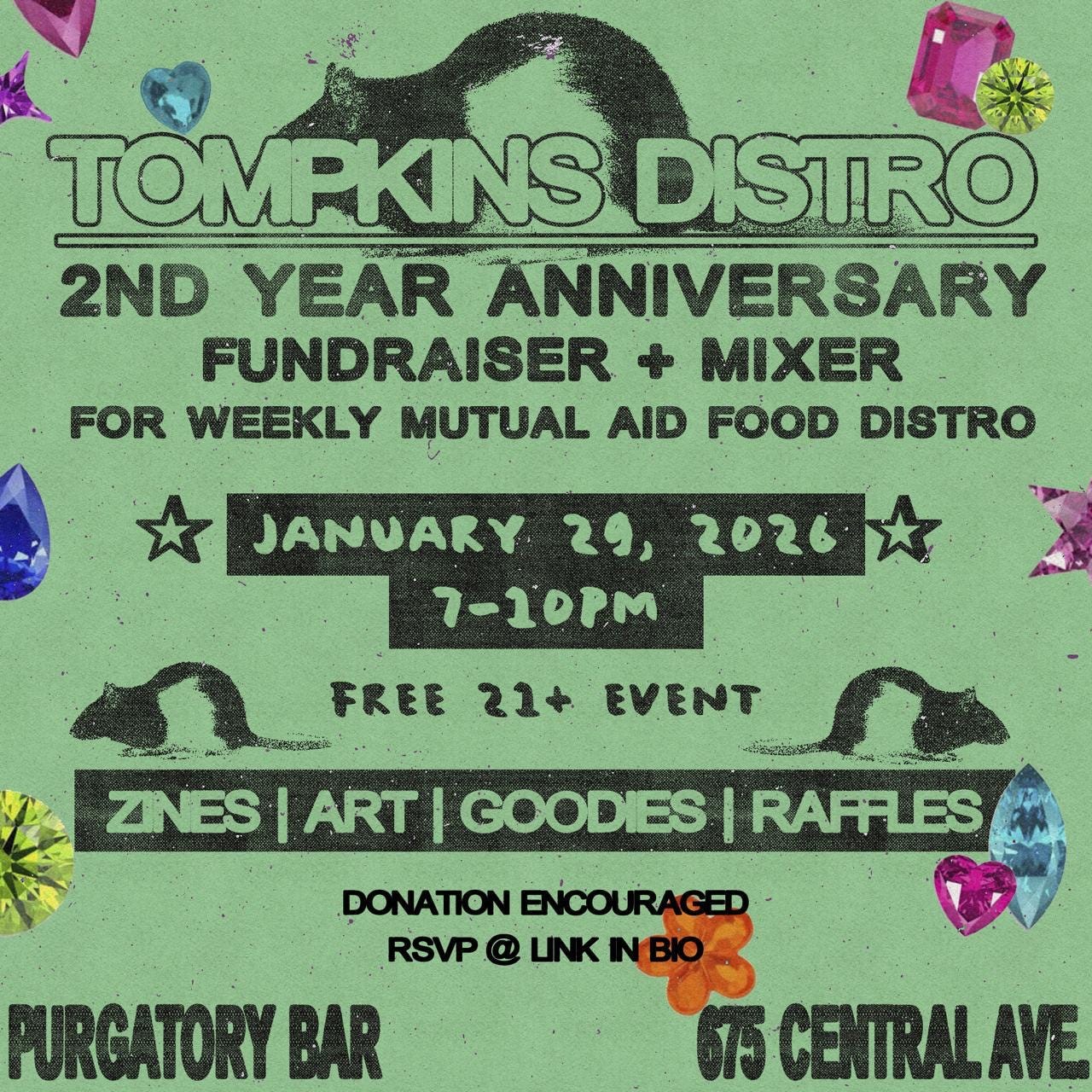 If you’re in New York! Join us at Purgatory Bar on Thursday 1/29 from 7-10 to celebrate 2 Years of Tompkins Distro!